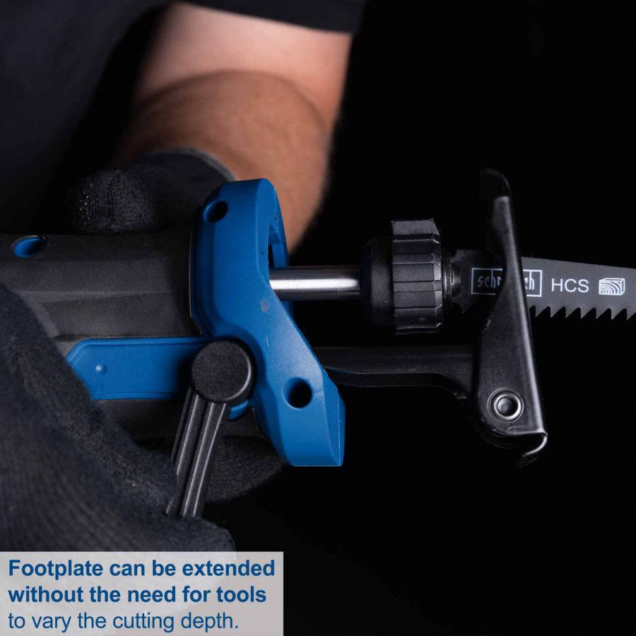 Toolless extendable foot plate for variable cutting depth