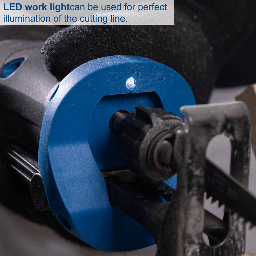 On-board LED worklight illuminates the cut line