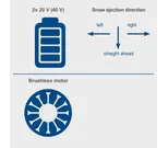 Den underhållsfria borstlösa motorn ger längre drifttid, hög effektivitet och lång livslängd med minimalt slitage. Snöslungan drivs av 2 × 20V batterier (40V totalt) och ingår i Scheppach IXES 20V-systemet, där alla batterier och laddare är kompatibla mellan maskinerna.