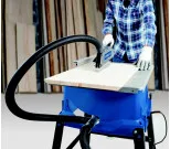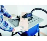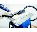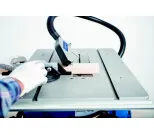 Bladhöjden kan justeras steglöst med hjälp av en vev, vilket ger användaren fullständig kontroll. Den medföljande anslutningen för dammsugare och slang hjälper till att hålla arbetsområdet rent från damm och spån. Den stabila parallellanslaget och vinkelbordet säkerställer raka och exakta snitt.