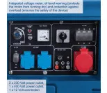 Denna kraftfulla dieselgenerator levererar en uteffekt på 5000 W och en maxeffekt på 5500 W, vilket gör den idealisk för både större och mindre tillämpningar. Utrustad med AVR-spänningsreglering och flera uttag, inklusive 2x230V och 1x400V, kan den hantera olika typer av utrustning. Generatorn har dessutom överbelastningsskydd och skydd vid låg oljenivå för säker drift. Voltmätaren ger dig full koll på spänningen under användning.