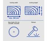 Kapacitet: Kapningskapacitet vid 90 grader är 340 x 65 mm och vid 45 grader 240 x 65 mm, vilket gör att sågen passar både stora och små arbetsprojekt.