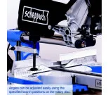 Precision och flexibilitet: Bordet kan vridas 45 grader åt båda håll, och sågen kan lutas 45 grader åt vänster, vilket ger flexibilitet för olika kapvinklar.