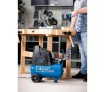 Scheppach HC30ox är en oljefri kompressor som erbjuder en fantastisk kombination av kraft, säkerhet och värde för pengarna. Den är kompakt och lätt att transportera, med en vikt på endast 18,3 kg och ett bekvämt handtag samt stora hjul som gör den enkel att flytta. Den är särskilt utformad för hobbyanvändare och semi-professionella, och lämpar sig för uppgifter som målning, pumpning av däck, rengöring med tryckluftspistol och nitarbete.