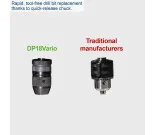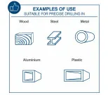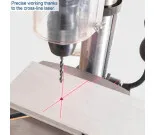 Den integrerade lasern och LED-arbetsbelysningen stödjer vid exakt riktning av borrhålet, så att det slutliga resultatet uppfyller alla krav. En fällbar skyddsskärm vid borrchucken förhindrar att borrspån sprider sig för långt.
