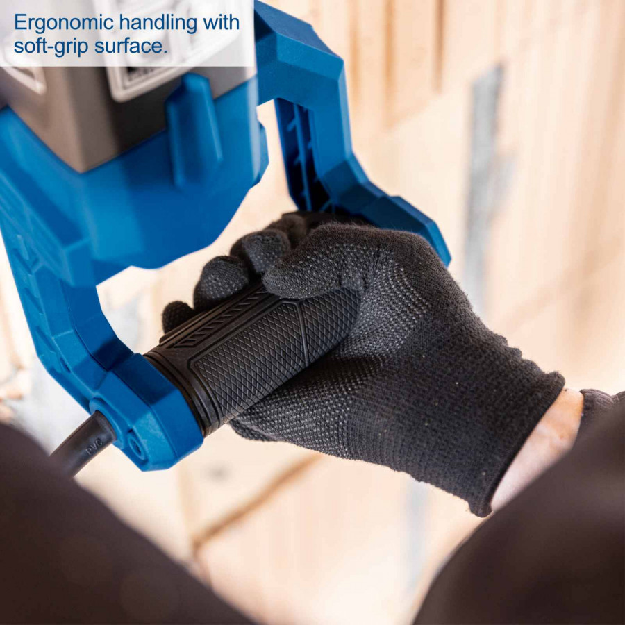 Ergonomisk tvåhandsgrepp: Mjuka handtag minskar trötthet.