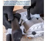 Steglöst justerbar skärdjup: 0–40 mm med tvåväxlad mekanism, utan verktyg.