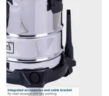 Rymlig 20 liters behållare i rostfritt stål – tålig och lätt att tömma tack vare snabbfästet.