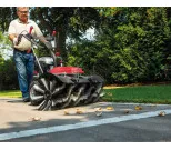 Scheppach SC2200PE sopmaskin med en kraftfull 173 cm³ / 4,9 HP bensinmotor, utrustad med uppsamlingslåda och snöplog, gör arbetet över stora ytor enkelt och bekvämt.