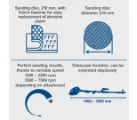Scheppach DS930 är en kraftfull långhalsad slipmaskin, perfekt för slipning av väggar och innertak. Med de medföljande runda och triangulära sliphuvudena blir även svåråtkomliga hörn och kanter lätta att slipa. Maskinen är särskilt utformad för hobbyanvändare och gör ditt arbete både effektivt och bekvämt.