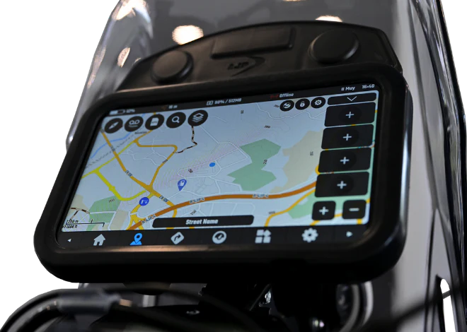 För optimal komfort i alla lägen är motorcykeln utrustad med ett rallysäte. Det vattentäta materialet och den helfodrade designen, i kombination med förbättrad ergonomi, ger en förstklassig äventyrsupplevelse. På den 8-tums skärmen har du alltid full koll på motordata, navigation och mycket mer – allt inom räckhåll.