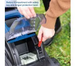• Battery compartment with safety key and foldable protective hood