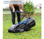 • High-performance cordless lawn mower with a cutting width of 38 cm and