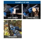 • Kompakt och lätt grensåg, idealisk för att kapa träd och buskar, samt minska grönt avfall till små bitar.