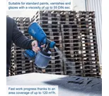 Laitteen jopa 700 ml/min virtaus ja suuri, jopa 120 m²/h peittoala tekevät siitä erinomaisen valinnan sekä pieniin että suurempiin projekteihin. Se sopii hyvin esimerkiksi huonekalujen, aitojen, ovien, seinien ja polkupyörien maalaukseen.