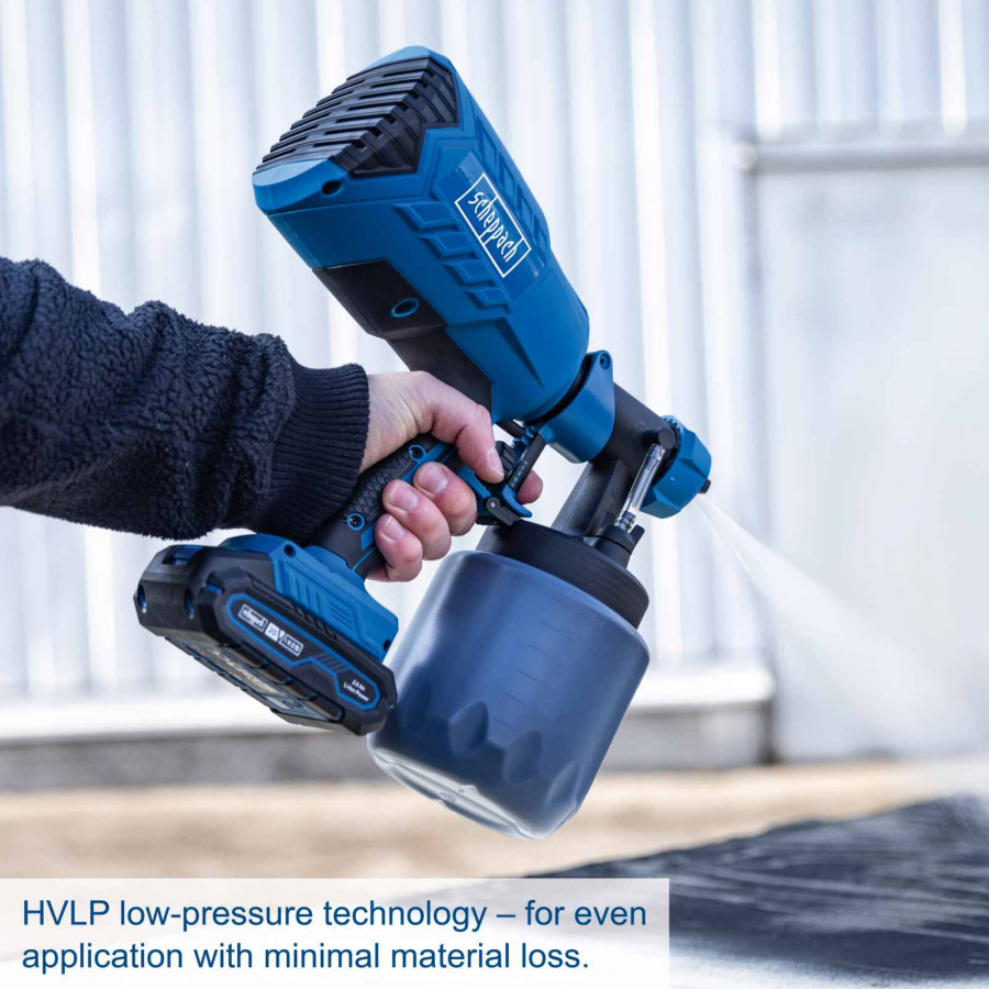 Scheppach C-APS700-X – SET S on tehokas akkukäyttöinen maaliruiskutusjärjestelmä, joka tekee maalaamisesta nopeaa, helppoa ja tasalaatuista. HVLP-teknologian ansiosta maali levittyy tasaisesti ja roiskeet vähenevät.