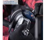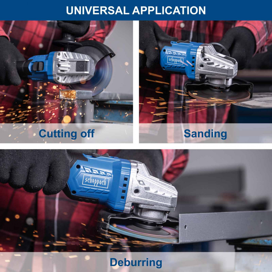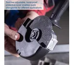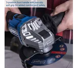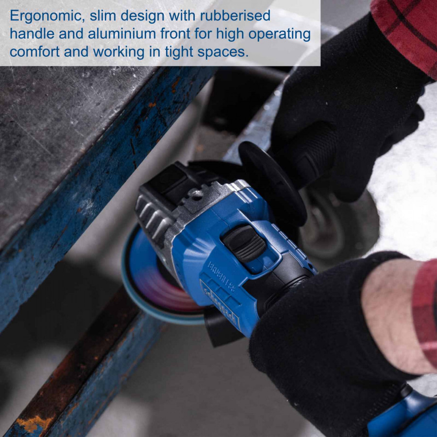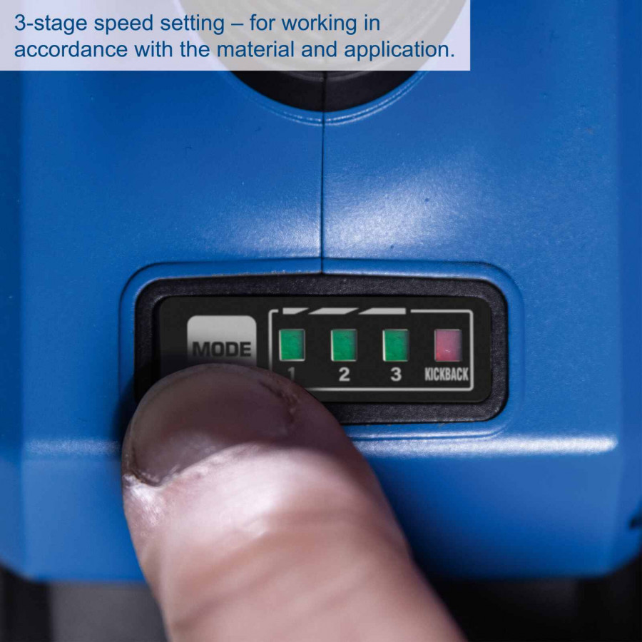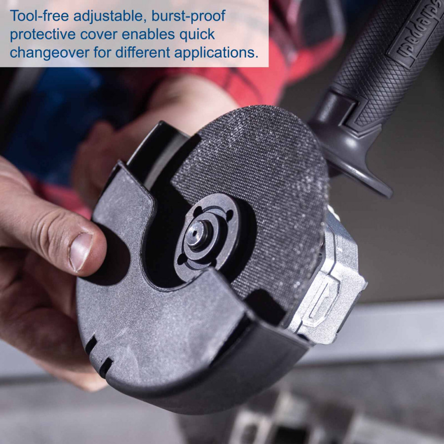 Kapea ja ergonominen runko kumipinnoitetulla kahvalla takaa miellyttävän otteen. Työkaluton suojakuvun säätö ja kolmiasentoinen lisäkahva tekevät käytöstä joustavaa ja turvallista.