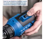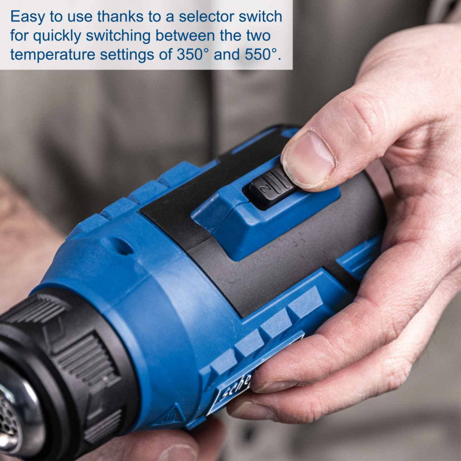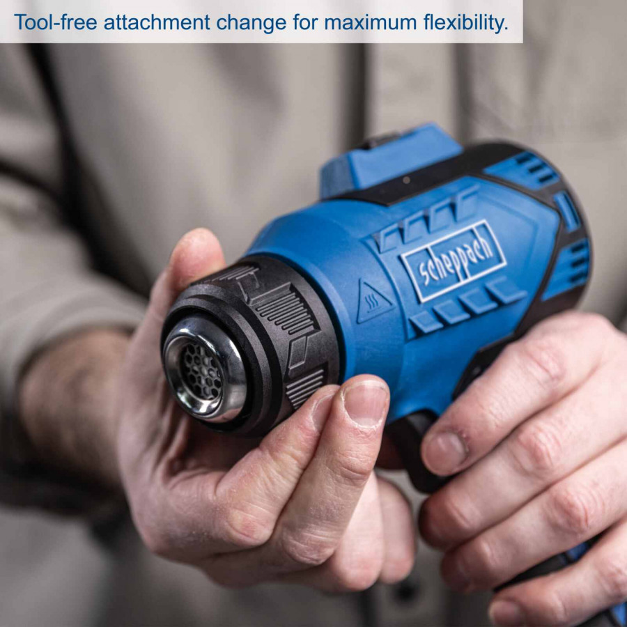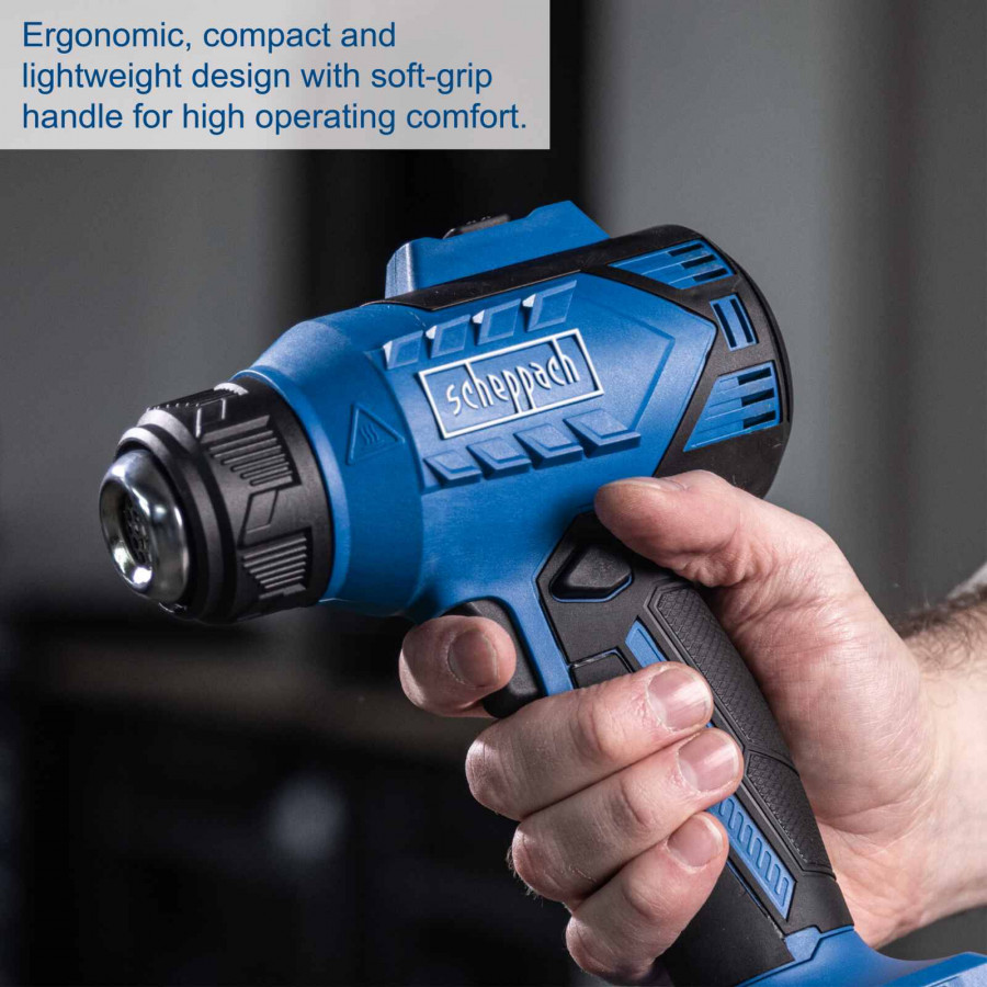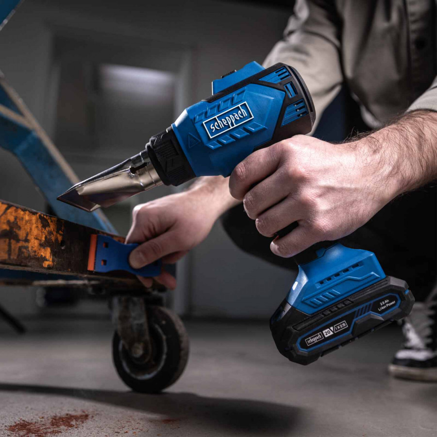 Scheppach C-HAG550-X – SET S on kompakti ja tehokas akkukäyttöinen kuumailmapuhallin monipuolisiin käyttötarkoituksiin. Kahden lämpötila-asetuksen (350 °C ja 550 °C) ansiosta voit helposti säätää laitteen eri työtehtäviin – kuten lämmittämiseen, irrottamiseen, kuivaamiseen ja muotoiluun.
