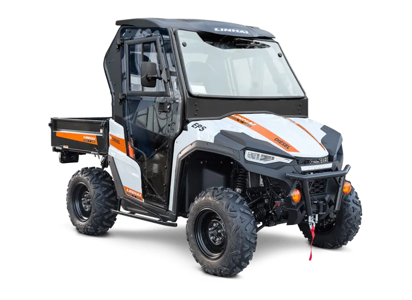 Luotettavalla japanilaisella Kubota-dieselmoottorilla, tilavalla tavaralavalla ja mukavalla lämpöhytillä varustettu, premium-luokan LINHAI 1100 Diesel CAB UTV tarjoaa kaiken, mitä ammattilainen tarvitsee. Sen vankka rakenne, erinomainen kestävyys ja helppo käsiteltävyys tehostetun ohjauksen ansiosta tekevät siitä väsymättömän kumppanin, jolla on valtava vetokyky ja monipuoliset käyttömahdollisuudet. UTV1100 Diesel CAB on ihanteellinen apuri maataloudessa, metsätöissä, rakennustyömailla, kunnallisissa palveluissa ja viherrakentamisessa – missä tahansa, missä raskaita kuormia täytyy siirtää, perävaunuja vetää, laitteita käyttää ja kovaa työtä tehdä. Kaikki tämä tulee houkuttelevaan hintaan, jota kilpailijoiden on vaikea päihittää.