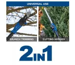 2-in-1-leikkuutoiminto: Laite toimii sekä pensasleikkurina että oksasahana, mikä tekee siitä erittäin monikäyttöisen.