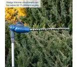 Kyseessä on tehokas ja monipuolinen akkukäyttöinen monitoimilaite, joka on suunniteltu erityisesti pensasaitojen leikkaamiseen ja korkeampien oksien sahaamiseen. Laite kuuluu Scheppach IXES 20 -sarjaan, joten siinä voidaan käyttää tämän sarjan akkuja ja latureita, vaikka akku ja laturi myydään erikseen.
