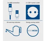 Pistorasiat: 2 x 230V (AC), 2 x 5V / 2.1A (DC)